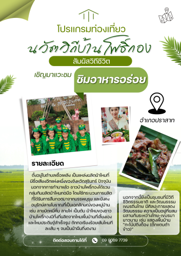 สำนักงานพัฒนาชุมชนอำเภอปราสาท ร่วมส่งเสริมสนับสนุนการท่องเที่ยวในหมู่บ้าน โอทอปนวัตวิถี สอบถามข้อมูลเพิ่มเติมได้ที่ สำนักงานพัฒนาชุมชนอำเภอปราสาท ชั้น 2 ที่ว่าการอำเภอปราสาท หรือ https://www.facebook.com/profile.php?id=61557381481395