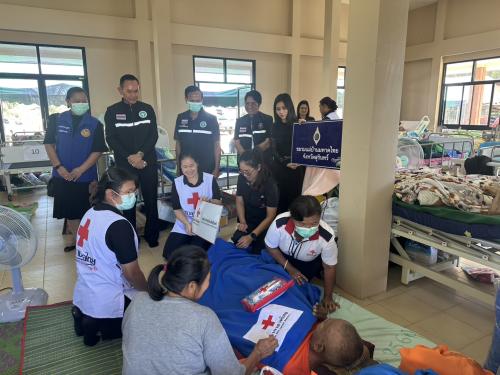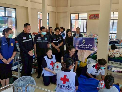 นางชไมพร แหวนเพ็ชร นายกเหล่ากาชาดจังหวัดสุรินทร์/ประธานชมรมแม่บ้านมหาดไทยจังหวัดสุรินทร์ พร้อมด้วย นางสาวฉันท์ชนก สิงหเสนา รองนายกเหล่ากาชาดจังหวัดสุรินทร์ คณะกรรมการ/สมาชิกเหล่ากาชาดจังหวัดสุรินทร์ ชมรมแม่บ้านมหาดไทยจังหวัดสุรินทร์ ร่วมกับ สถานีกาชาดที่ 1 จังหวัดสุรินทร์ ลงพื้นที่ติดตามเยี่ยมและให้กำลังใจให้กับผู้ประสบภัยชายแดนไทย – กัมพูชา และมอบเครื่องอุปโภค บริโภค อาหารแห้ง เครื่องนุ่งห่ม ผ้าอ้อมสำเร็จรูป ผ้าห่ม ขนม นม และชุดอนามัย ไว้ช่วยเหลือผู้ประสบภัยดังกล่าว ณ ศูนย์พักพิงชั่วคราวผกาสะเร็น ตำบลเชื้อเพลิง อำเภอปราสาท จังหวัดสุรินทร์